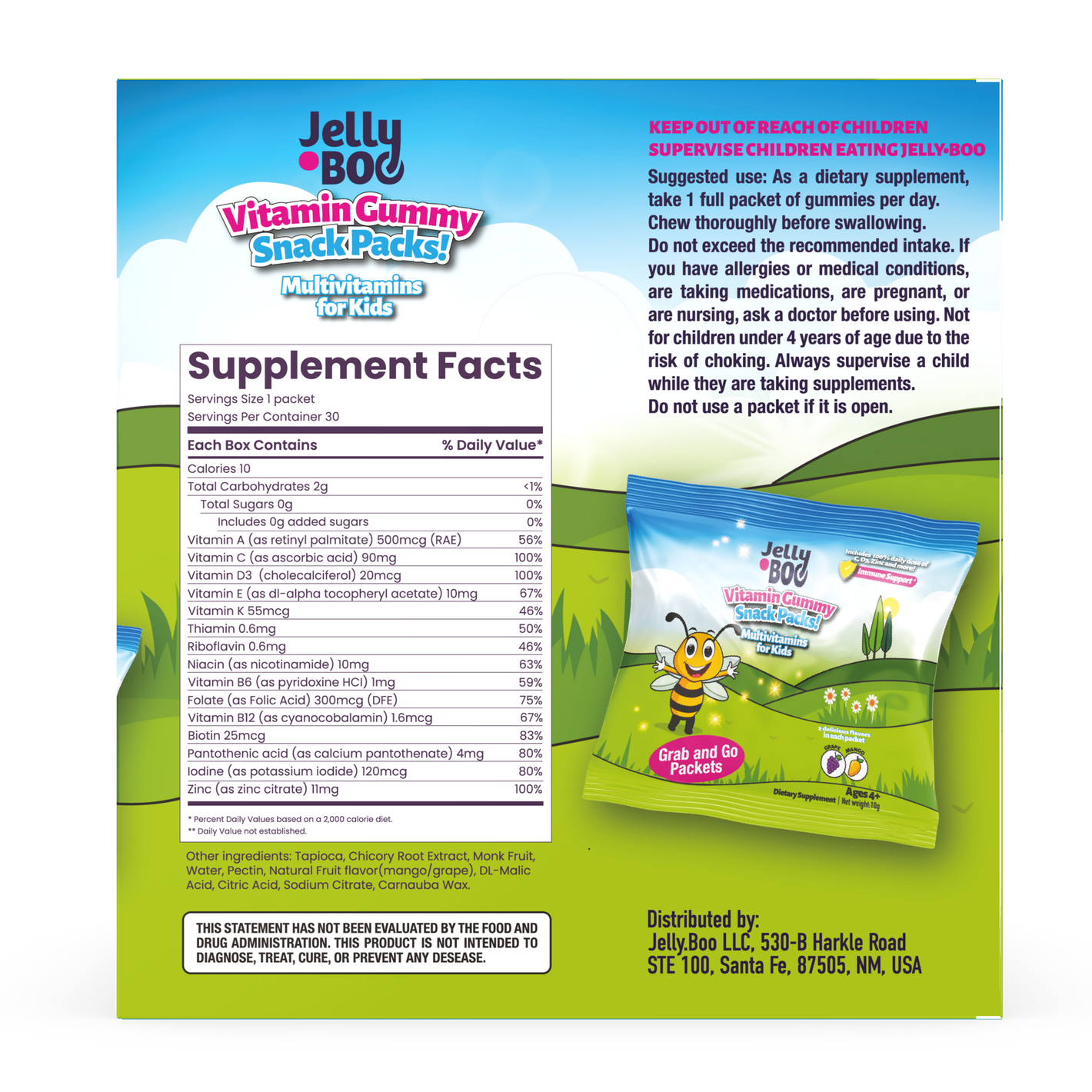 Just rip off a Jelly.Boo pack and toss it into your child’s lunch box! One pack contains 6 high quality vitamin jelly beans that will help fuel their day.
