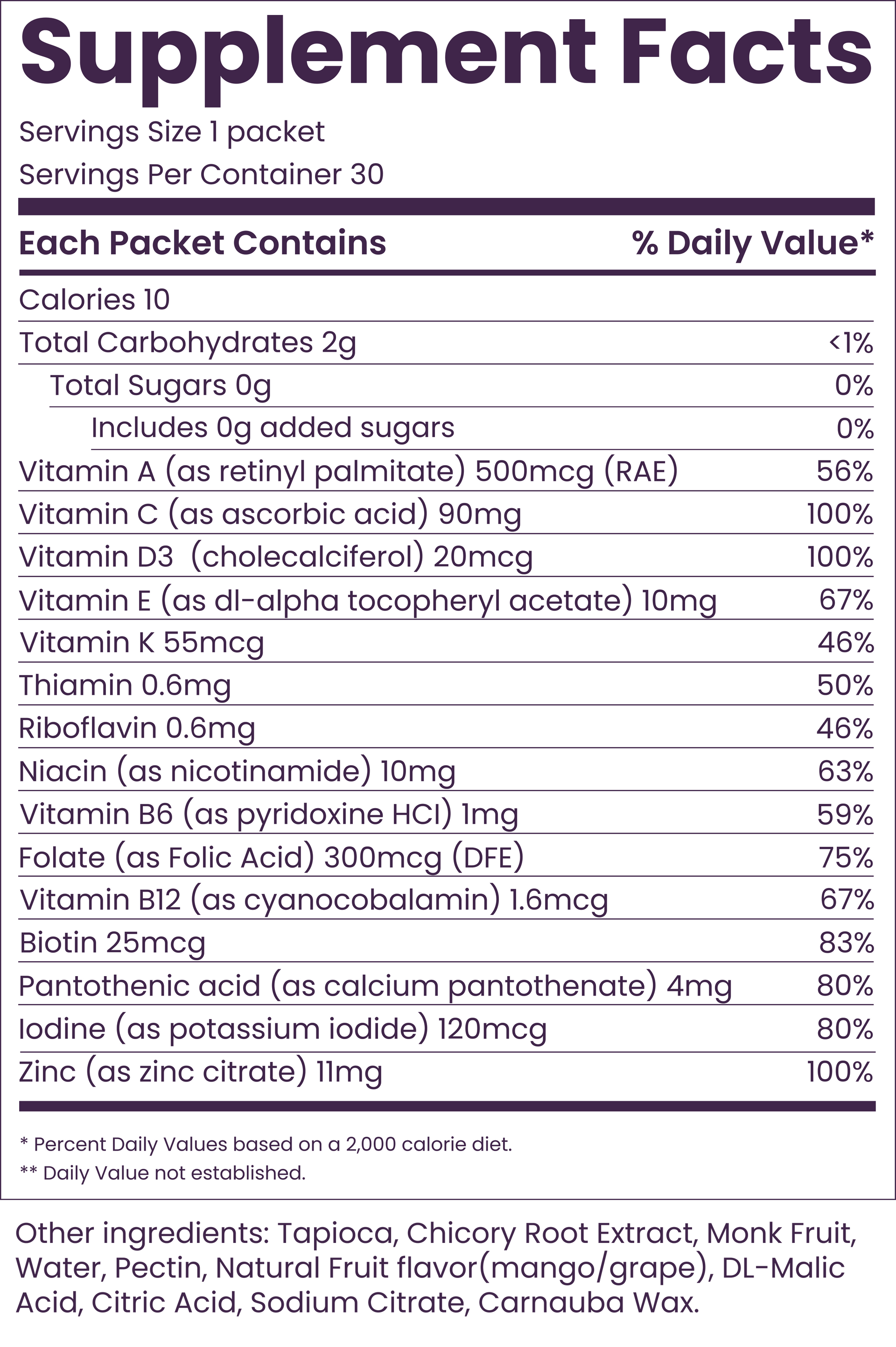 Vitamin C (100% of daily recommended value)